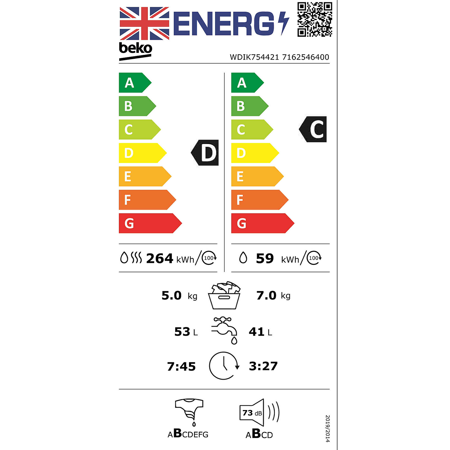 Beko WDIK754421 Integrated 7Kg / 5Kg Washer Dryer With 1400 Rpm – White