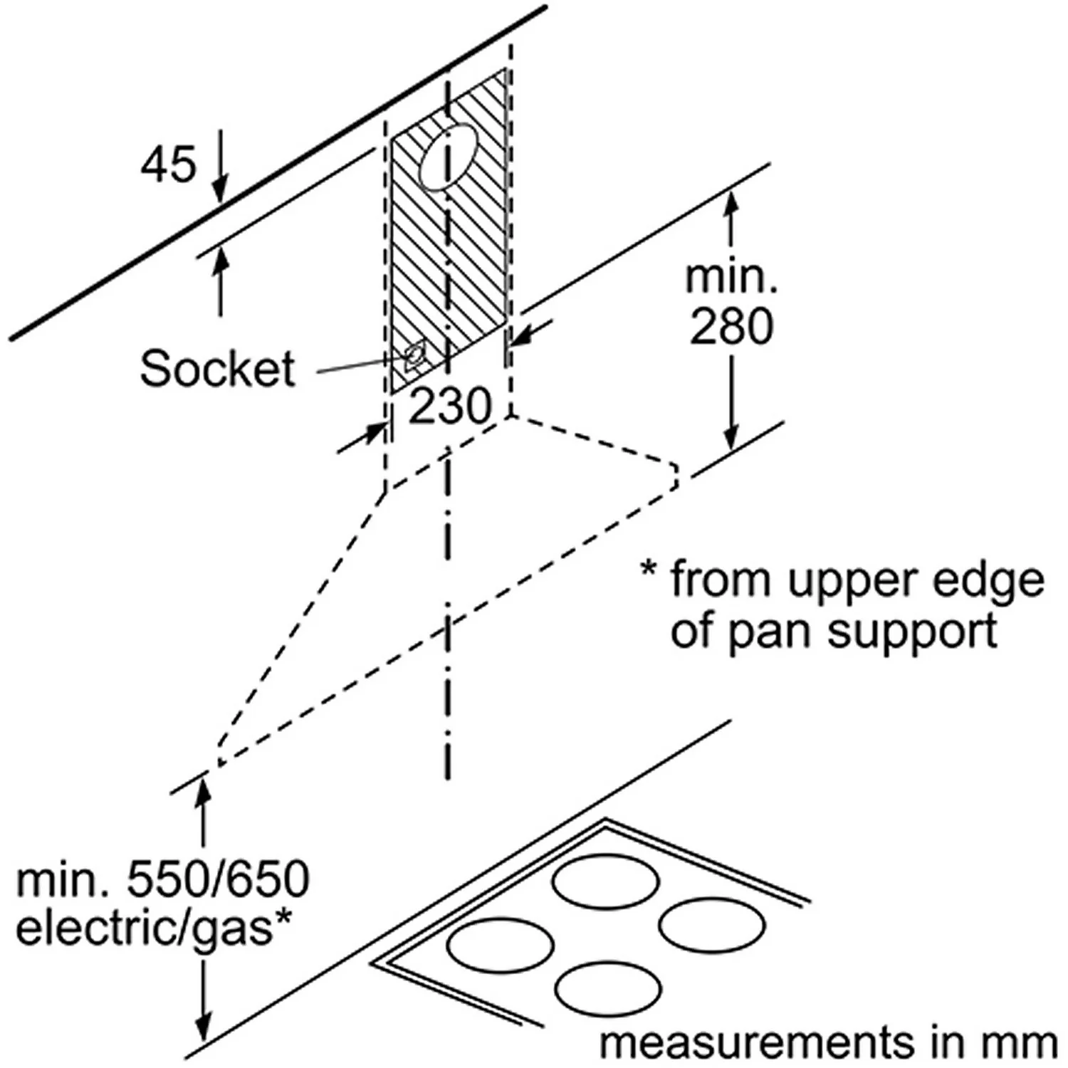 - It’s 80cm wide, making it fit perfectly above a standard 4-ring hob