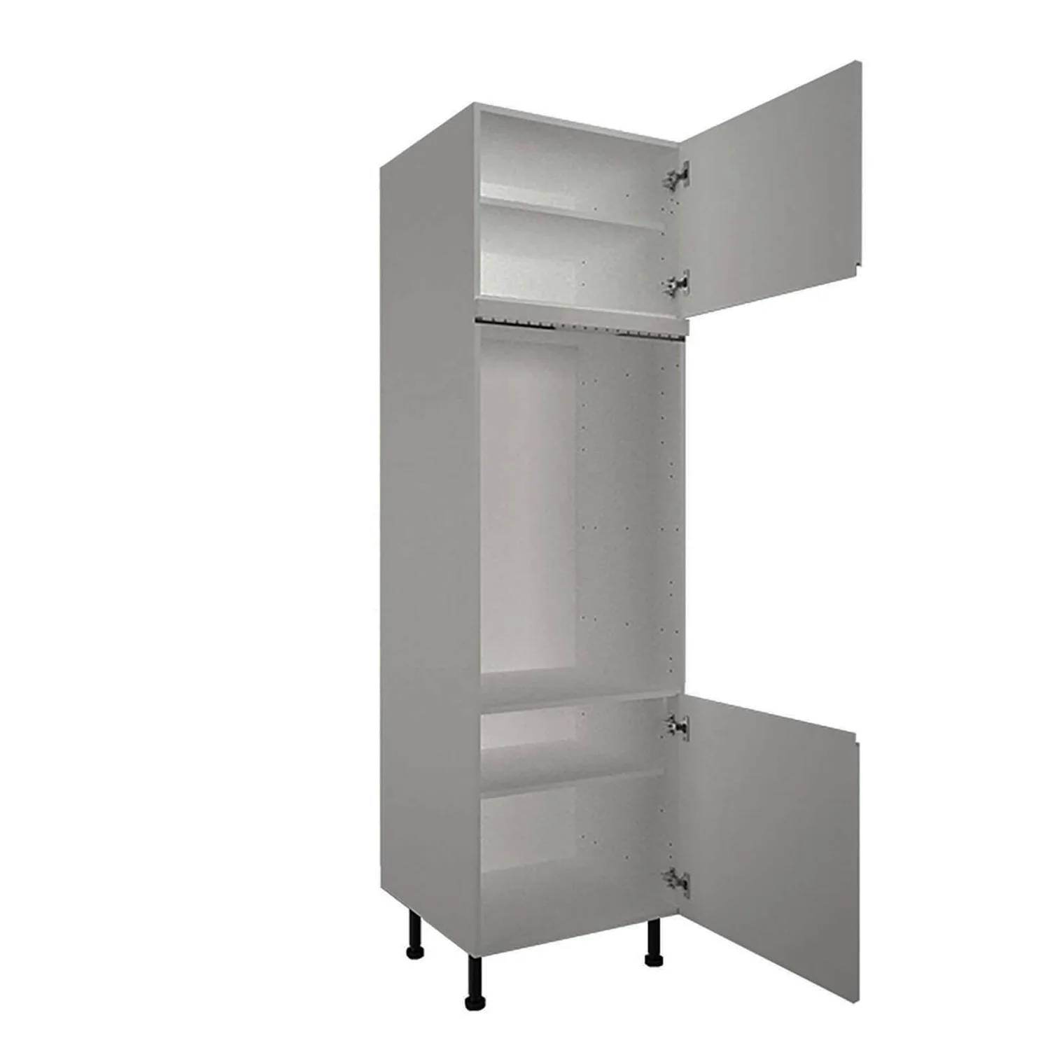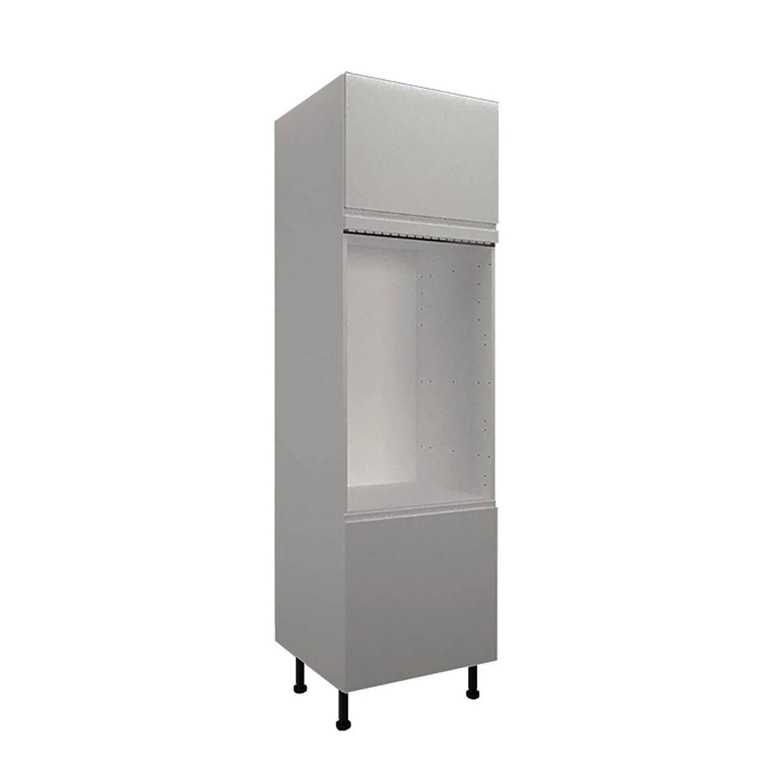A 600mm wide kitchen double oven tower housing cabinet complete with contemporary gloss grey handleless doors (Flat pack cabinet).
