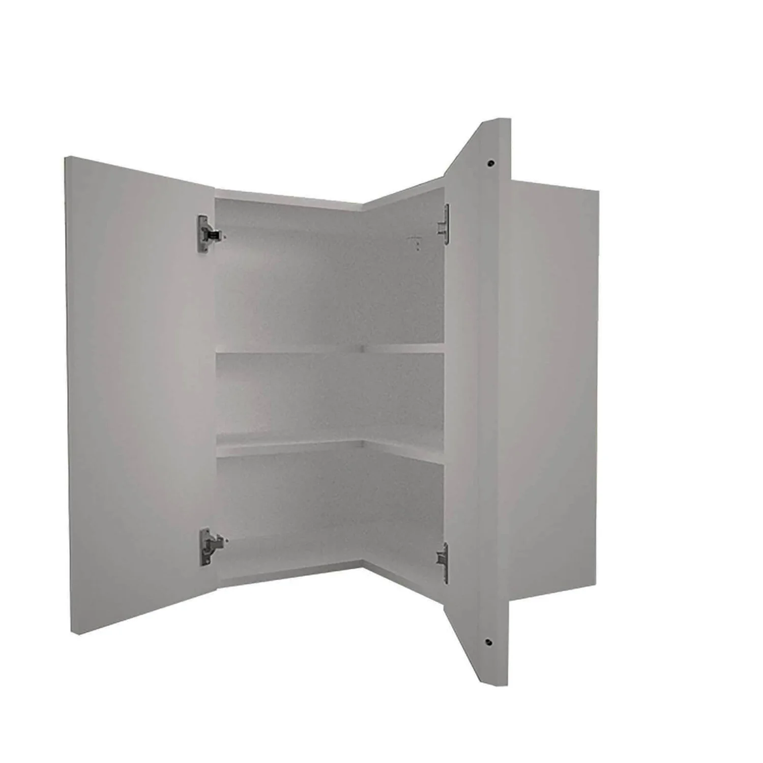 A 635mm corner wall cabinet complete with contemporary high gloss grey slab doors (Flat pack cabinet).